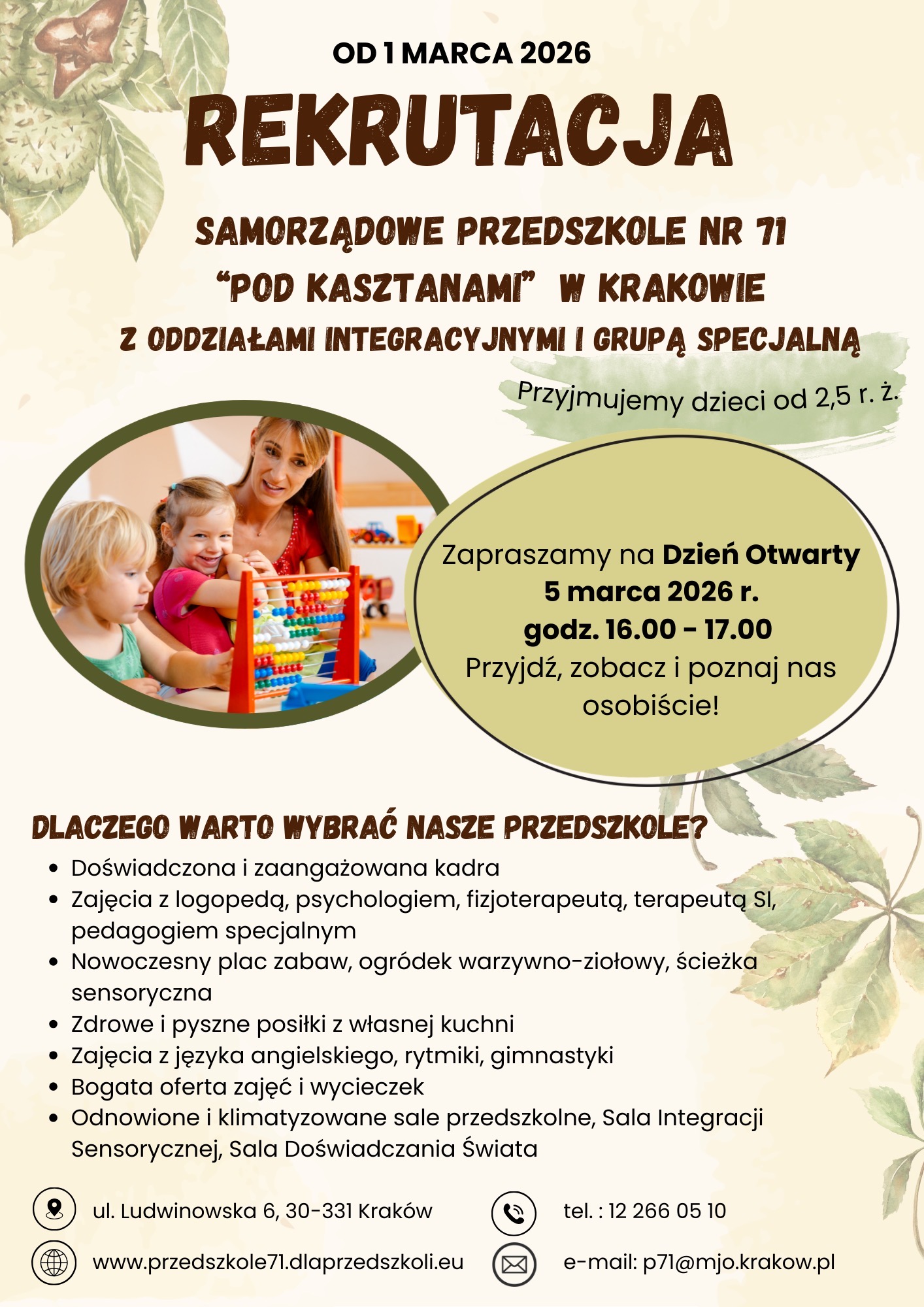 Zapraszamy do wzięcia udziału w rekrutacji do naszego przedszkola.